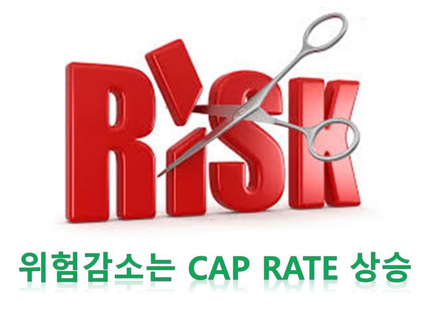 투자 리스크가가 낮아지는 상황에서는 기대수익률이 낮아지므로 (기대이익=자본이익+위험이익) Cap rate는 하락하게 된다.