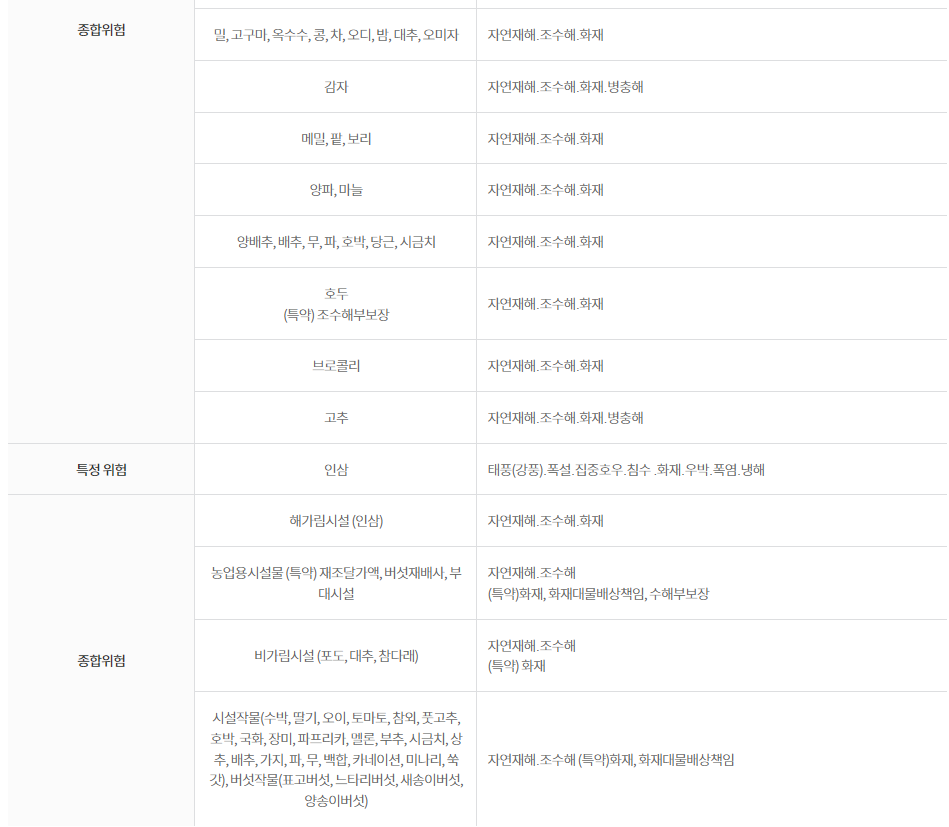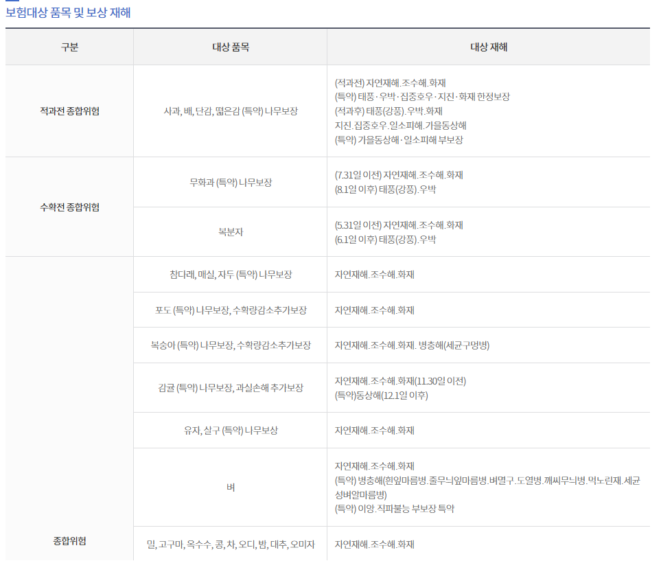 종합위험보장 과수 적과전종합위험II,포도,복숭아,유자,참다래,자두,오미자,밤,대추,호두,매실,살구