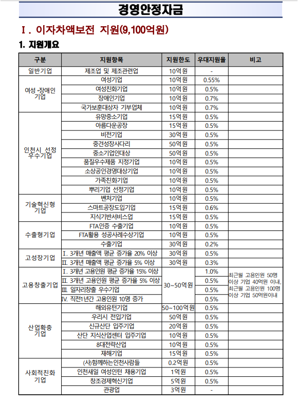 2022년 인천광역시 중소기업육성자금 년 인천광역시 중소기업육성자금 지원계획