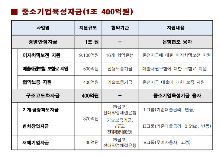 ○ 지원내용 운전자금의 대한 이자차액보전 : 직접대출 및 보증이 아니며 대출가능여부는 사전에 업체가 은행에 직접 확인 요함 ( , )